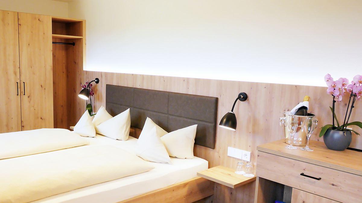 Doppelzimmer oder Doppelzimmer zur EinzelbelegungWohn-/Schlafzimmer ca. 28 m², Bad, WLAN, TV, Kühlschrank, Minibar, Fön, allergikerfreundlich, Nichtraucherzimmer, Bettengröße: pro Person 0,90 m x 2,00 m