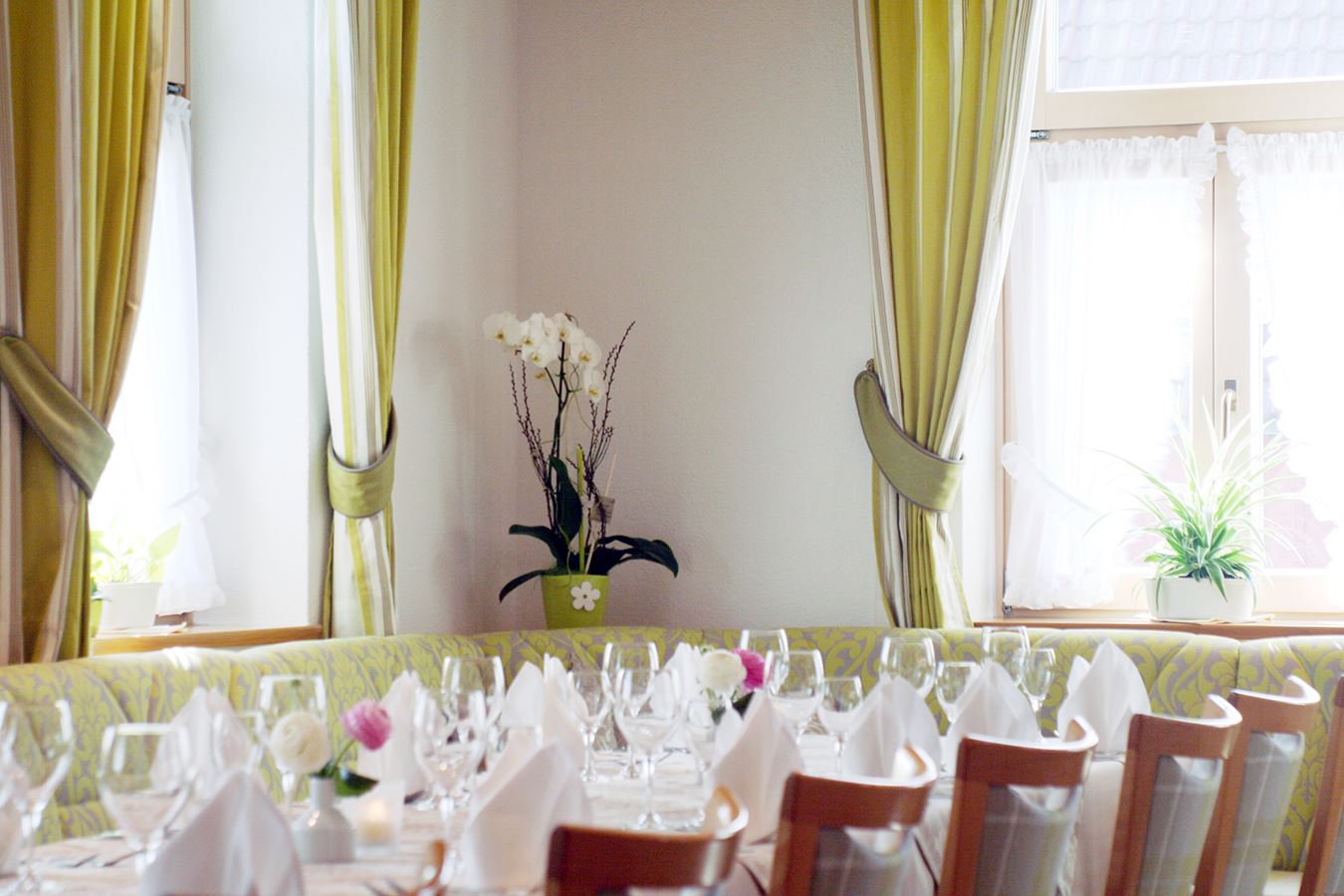 Unsere gepflegte Küche bietet den Genießern von nah und fern nicht nur regional schwäbische Spezialitäten und Gerichte der Saison, sondern auch Wildgerichte und Hausmacher Vesper, sowie Spezialitäten von Weidelämmern der Zollernalb, verfeinert mit Kräutern aus unserem eigenen Kräutergarten.